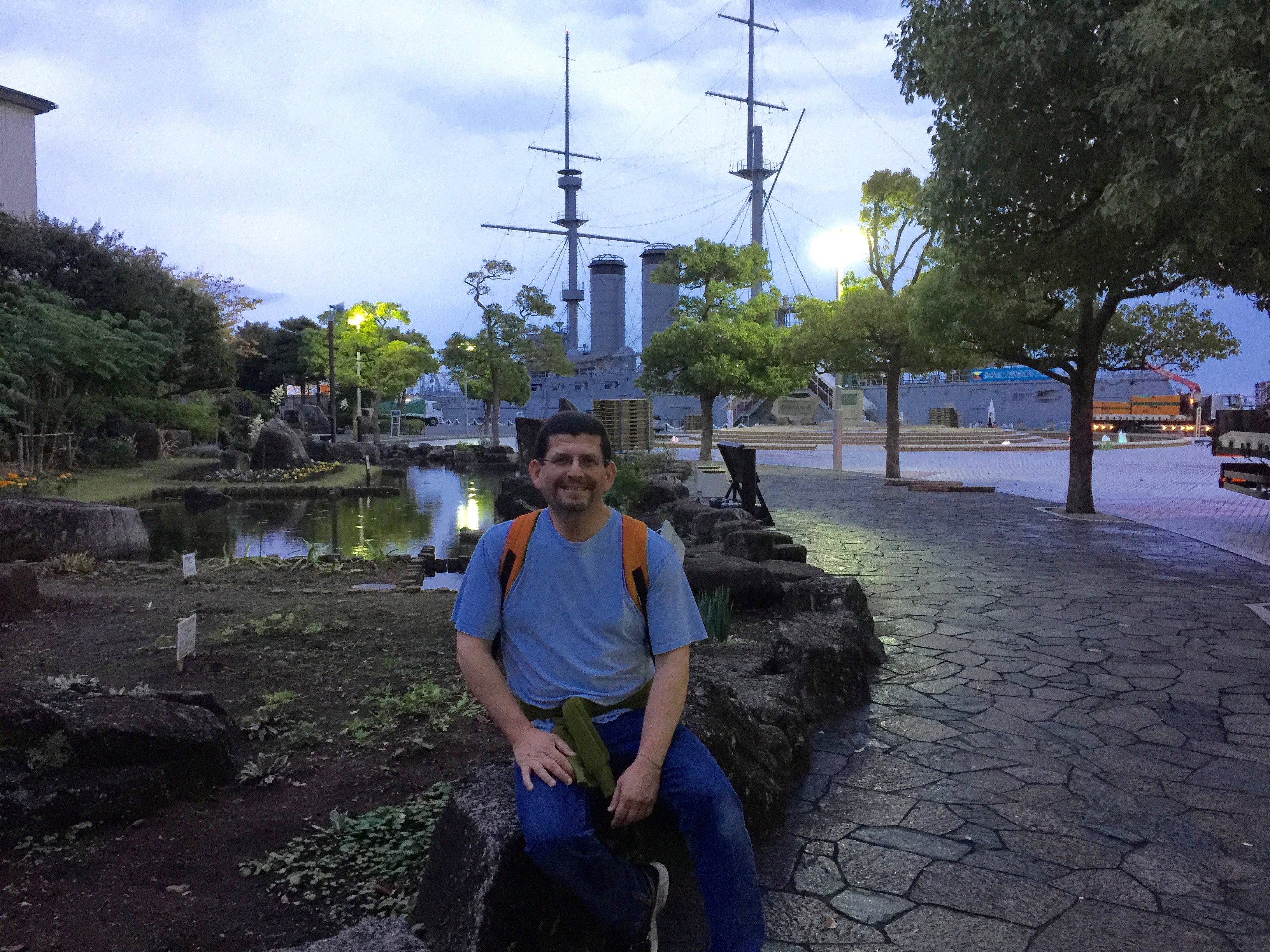 On our last night staying in Kawasaki we met up with our good friend Bryan Altaker for dinner. We arrived early and after walking through the many shops we walked to Mikasa Park. Such a beautiful park where the Japanese battleship Mikasa is on permanent exhibit. The park overlooks Tokyo Bay and the United States Navy Base Yokosuka. We walked through the park at dusk and in the rain. Somehow it felt just right!
